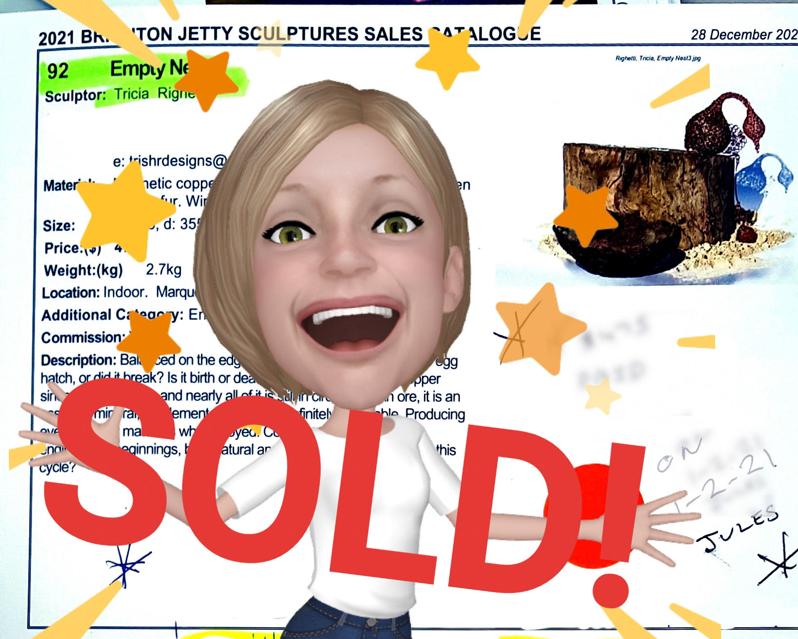Two entries this year; Pod and Empty Nest. Happy to say Empty Nest was sold. Pod; Copper wire, 65 x 90mm. Empty Nest; Wood, copper wire, sand. 212 x 355 x 355mm