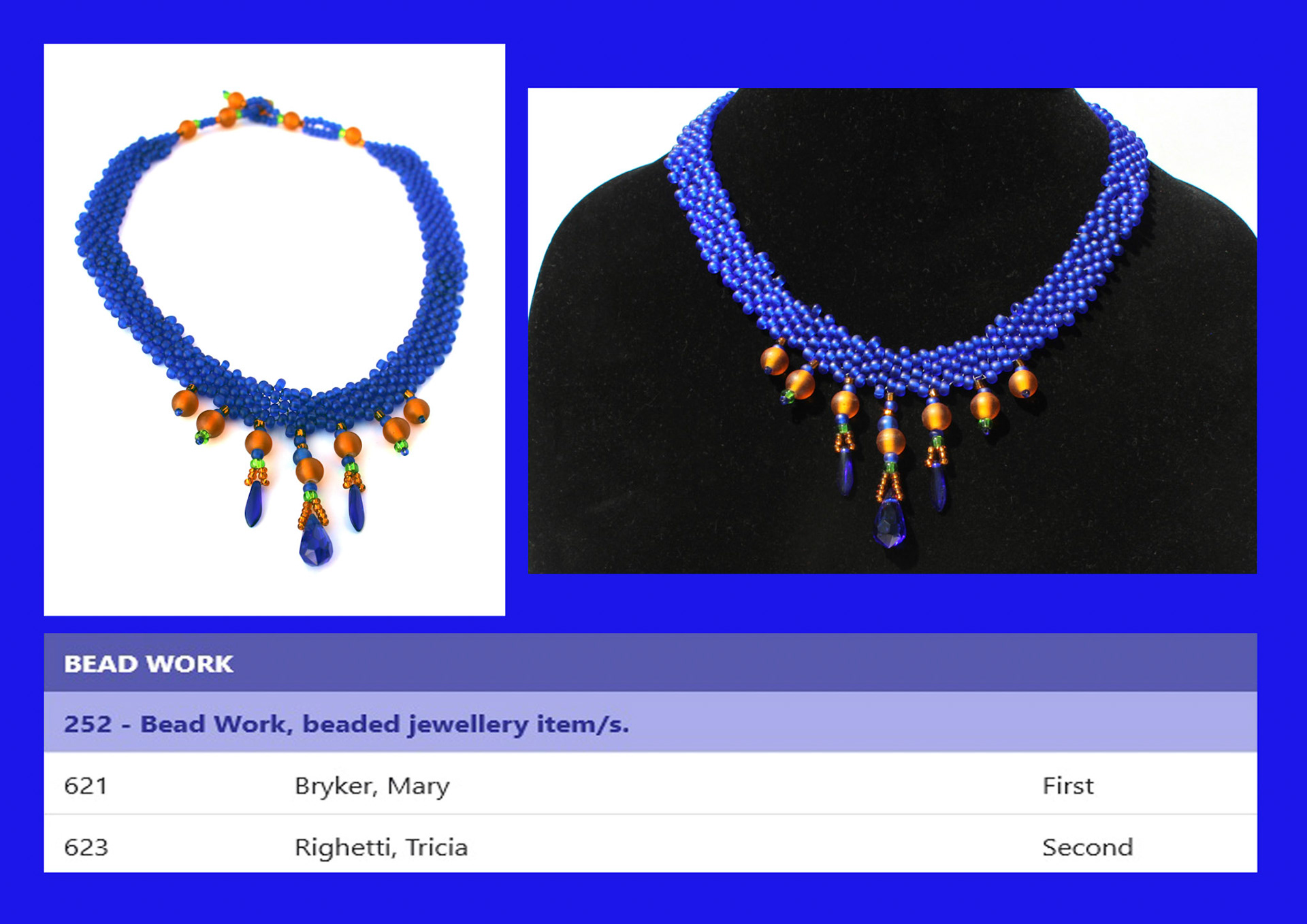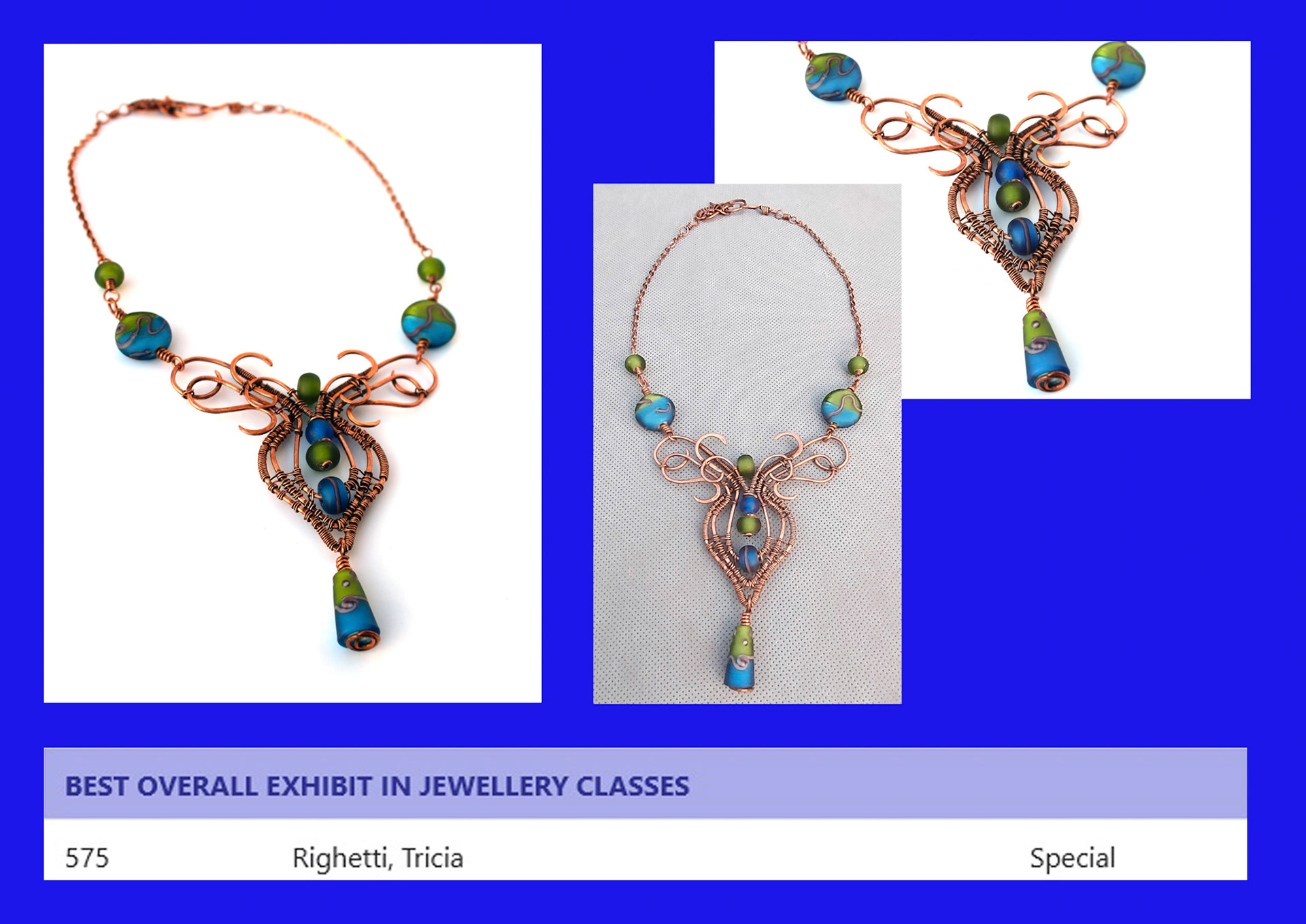 In the 2019 Royal Adelaide Show, I won three blue ribbons/first prizes and also Best In Show for the Pod Brooch